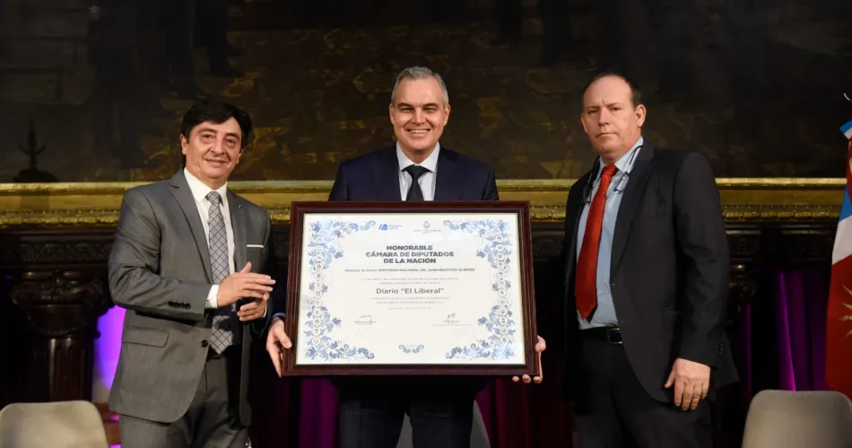 La Cámara de Diputados de la Nación otorgó la mención de honor "Diputado Nacional, Dr. Juan Bautista Alberdi" al Diario EL LIBERAL de Santiago del Estero. El premio se entregó este viernes 3 de noviembre, día de su aniversario, en el Salón de los Pasos Perdidos del Congreso de la Nación, distinción que fue recibida por el Director del medio de comunicación, Lic. Gustavo Ick.