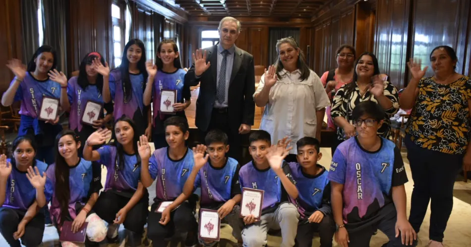Los chicos fueron recibidos en el Salón de Acuerdos "Juan Felipe Ibarra" por el ministro de Gobierno, Marcelo Barbur, quien saludó a la delegación en nombre del gobernador Gerardo Zamora.