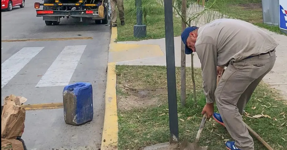 La Capital continúa trabajando en la colocación de cartelería vertical principalmente en las sendas peatonales de costanera Diego Armando Maradona.