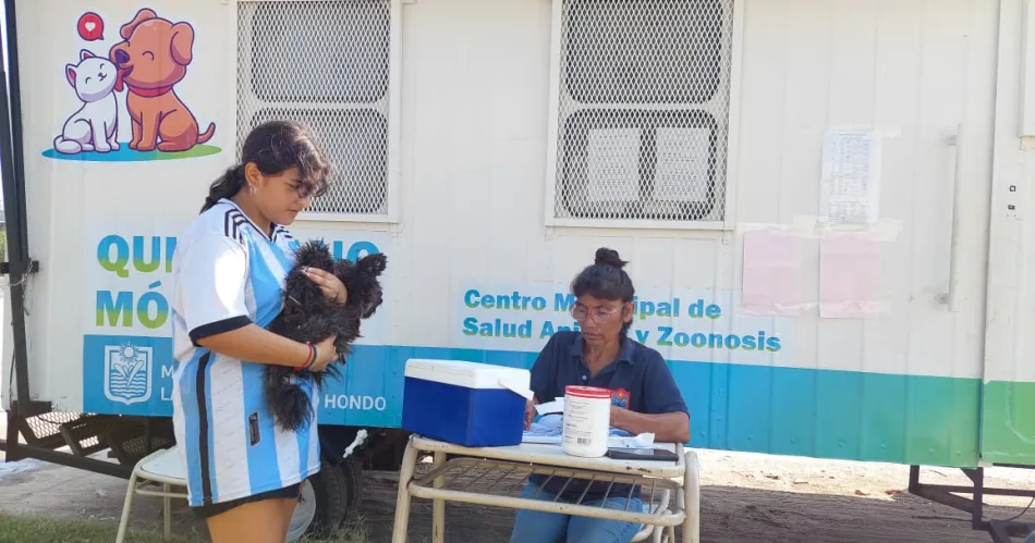 La campaña estuvo presente durante el lunes y martes en la explanada de la cancha del barrio 25 de Mayo, donde vecinos concurrieron con su perros y gatos para recibir el servicio que se brinda desde la unidad.