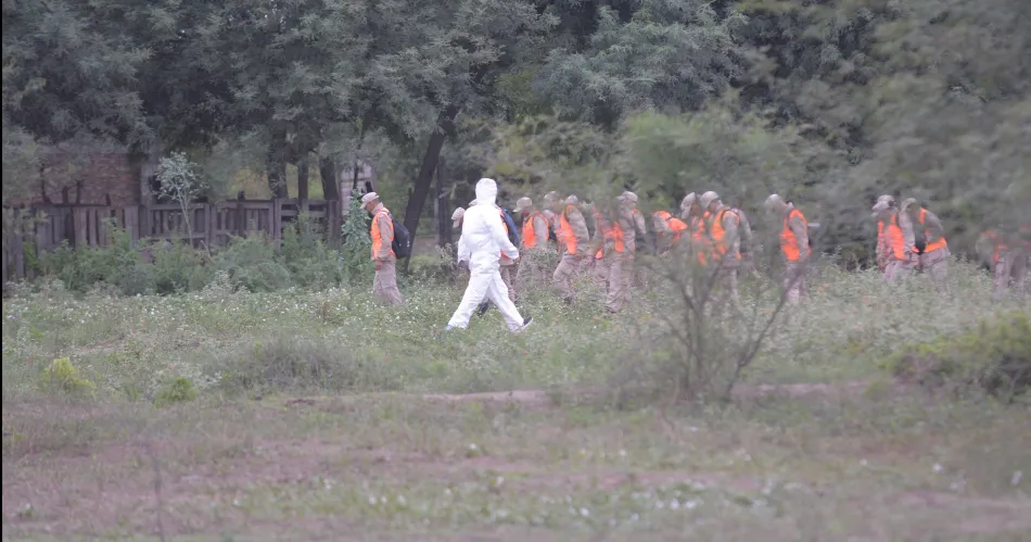 Bajo el mando del Departamento Homicidios y Delitos Complejos, los uniformados comenzaron un rastrillaje por un sector montuoso del paraje El Quemao (Robles) a donde en febrero habían hallado la moto en la que se movilizaba el femicida, el día después de asesinar con una sábana a su ex.