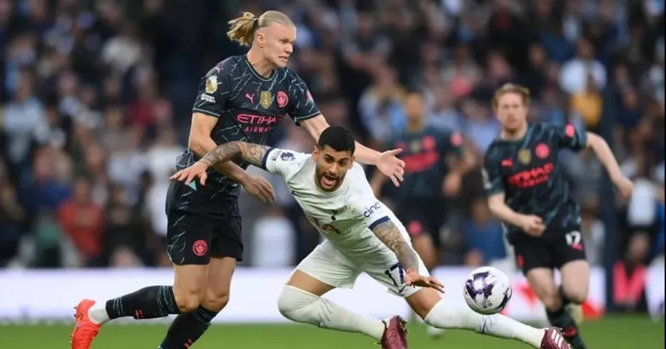 Manchester City consiguió el triunfo que necesitaba ante Tottenham en el postergado que debía jugar antes de la última fecha y, gracias al 2-0 en Londres, quedó como único puntero de la Premier League con una sola fecha por jugarse. Erling Haaland hizo los dos goles del equipo de Pep Guardiola, que llegó a los 88 puntos, superando por dos al Arsenal.