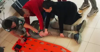 Los TEM Nelson Mir y Jorge Coronel iniciaron la Jornada, dividida en dos partes bien diferenciadas, una teórica dictada en conjunto a todo el grupo y otra práctica dónde dividieron para su mejor manejo en grupos de trabajos: unos en RCP avanzado y otros en la primera asistencia en el lugar del trauma.