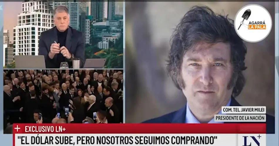 "Si yo tomara el dólar que tenía [Silvina] Batakis antes de [Sergio] Massa, lo traigo a hoy y da $3000. Nada de pánico, cero pánico", aseguró en LN+ Milei con respecto al precio del dólar blue, que cotizá a $1.500. Dijo, también, que hay una "anomalía" que observa el Gobierno porque la moneda extranjera se encuentra en ascenso, pero al mismo tiempo la Casa Rosada compra dólares.