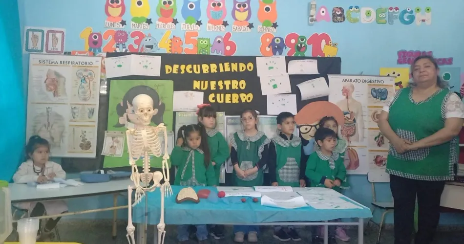 En cuanto a la sala nucleada de 4 y 5 años se profundizó "La parte del cuerpo humano, órganos y su funcionamiento básico" adaptado a los niños. En este espacio los pequeños realizaron una dramatización.