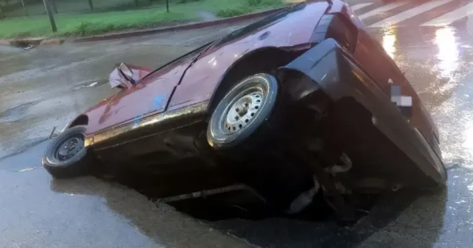 El conductor de 47 años identificado como P.C.S., circulaba en un Fiat Uno de color bordó. Mientras transitaba bajo la lluvia, su automóvil cayó lateralmente en el socavón, del que hasta ahora se desconoce cómo se generó.
