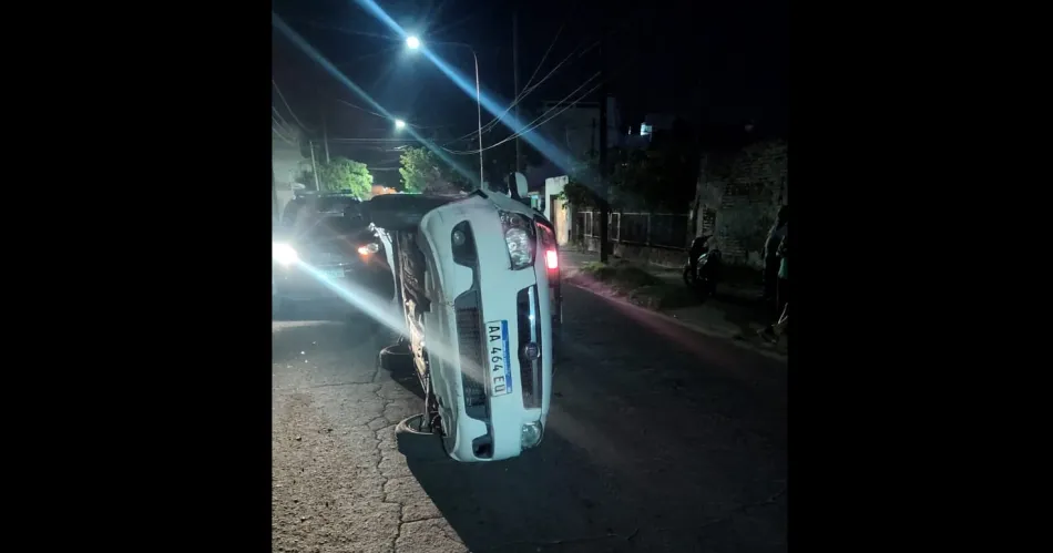 Remisero chocó con un auto estacionado y volcó