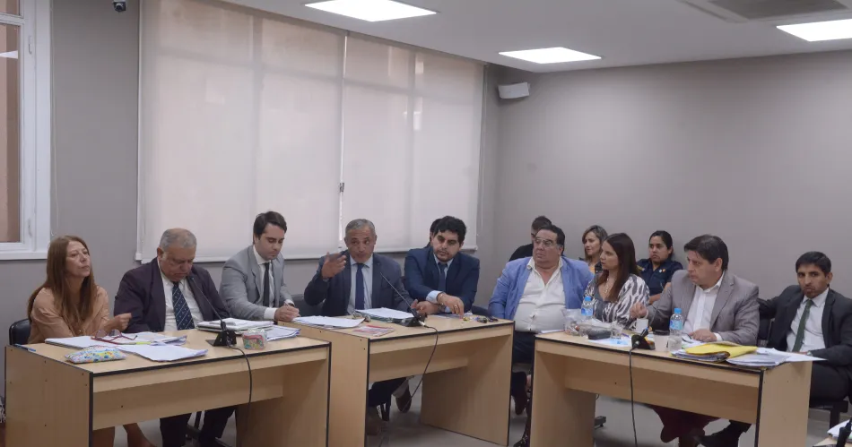 Enfrente, los abogados Gabriela Gauna y Pamela Gadán, representantes de José Carlos Pinto; Miguel Torres y José Elías, por Sebastián Amado; Iván Lastra y Gilberto Perduca, por Alejandro Silva Carmona; Lara Perrén Lucatelli y Juan José Saín, por César Pineda, y Federico Sayah Correa y Sergio Wintten, por María Corbalán.