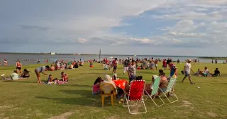 LAS TERMAS, Río Hondo (C). En el primer fin de semana de 2025, termenses y turistas se volcaron para mitigar las altas temperaturas a la Ecoplaya, que funciona en el Embalse Río Hondo entre la tradicional playa popular y Prefectura Naval.