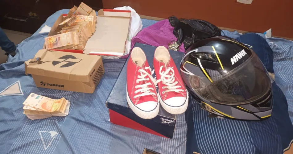 Además durante el allanamiento a la vivienda se secuestraron diversos elementos vinculados al hecho tales como $6.153.010 en efectivo; un arma de fuego calibre 22 con dos cartuchos; una motocicleta Motomel Skua negra con detalles rojos; un casco de color negro con detalles amarillos y blancos; mochilas, riñoneras, un teléfono celular y prendas de vestir.