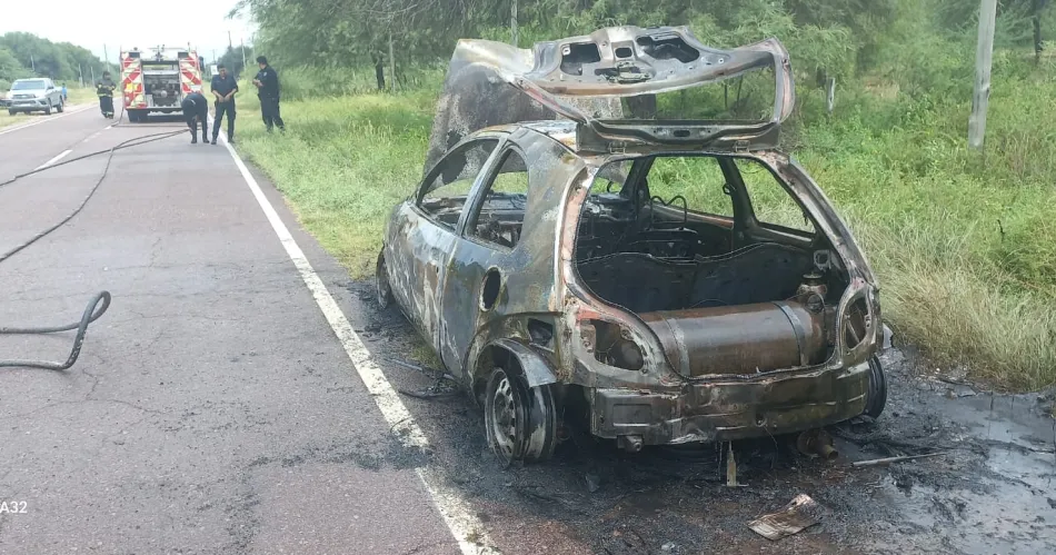 Un auto se incendió por completo al costado de la ruta