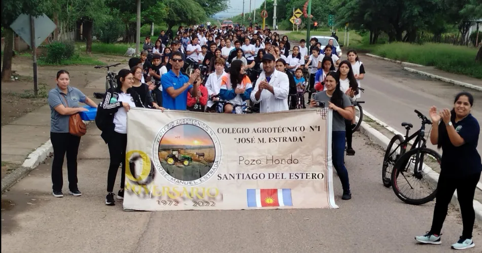 Se trató de una bicicleteada de 5 km por la ciudad de Pozo Hondo, con estaciones en diversas instituciones locales, en donde los alumnos recibieron un mensaje reflexivo a la fecha por parte de los referentes.