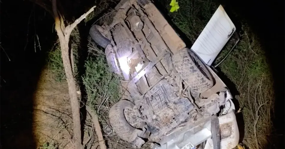 Tras desobedecer la orden de detenerse, ambos vehículos se dieron a la fuga en dirección este, dando inicio a una persecución que se extendió por varios kilómetros. Uno de los rodados perdió el control al atravesar una zona baja y volcó, desplazándose unos 40 metros dentro del monte. Del interior salieron un hombre y una mujer, quien sufrió lesiones de consideración, aparentemente una fractura en una pierna.
