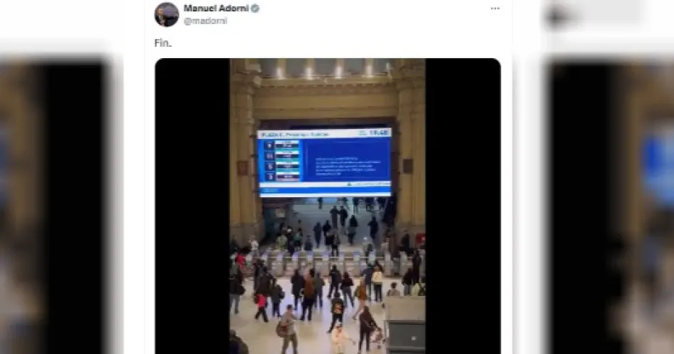 El video, difundido desde la tarde del miércoles, muestra una placa con la leyenda: "La casta sindical atenta contra millones de argentinos que quieren trabajar. Si te extorsionan o te obligan a parar, denunciá al 134", acompañado del mensaje del vocero presidencial Manuel Adorni en redes sociales, quien lo compartió con su habitual cierre: "Fin".