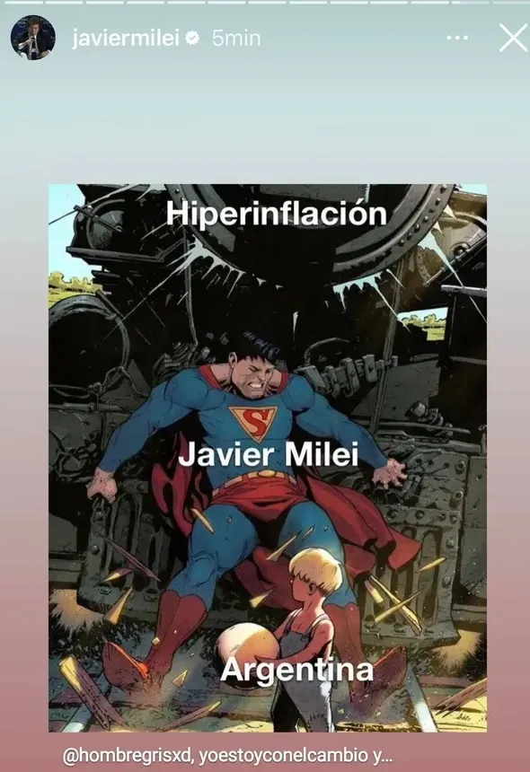 Milei, inflación y Superman: el curioso meme que compartió el presidente en redes sociales Milei, inflación y Superman: el curioso meme que compartió el presidente en redes sociales