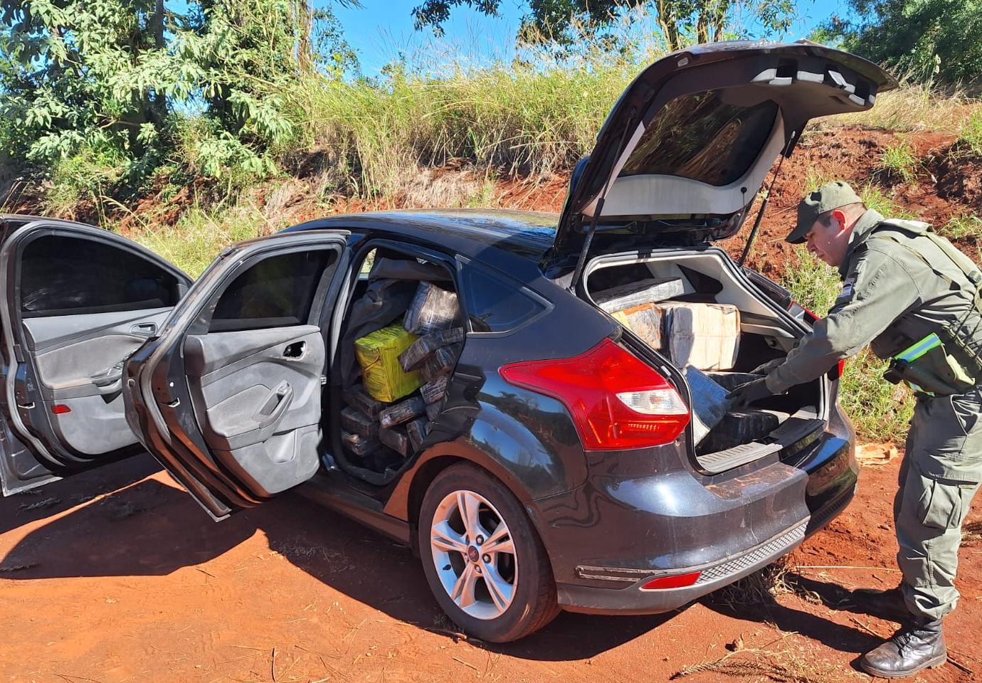Gendarmería Nacional Argentina (GNA), fuerza dependiente del Ministerio de Seguridad de la Nación, encontró el vehículo abandonado con 1.023 paquetes de marihuana en su interior, luego de que su conductor evadiera un control vial y huyera, en Campo Grande, provincia de Misiones.