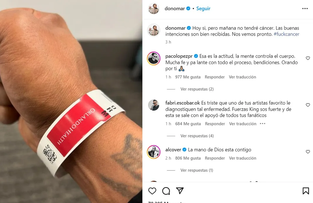 El puertorriqueño utilizó su cuenta en Instagram para mostrar una imagen donde se lo ve con una pulsera de la clínica Orlando Health de Florida, Estados Unidos, y contó que tiene esa dura enfermedad.