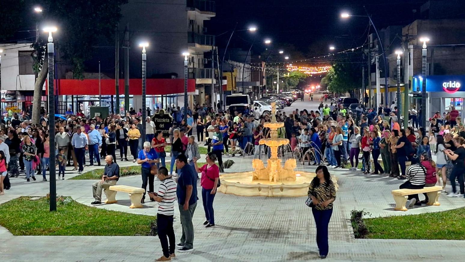 El intendente municipal, Humberto Salim, acaba de dejar inaugurado la remodelación total del Paseo céntrico que une las calles Tucumán (sector este) y Mitre (oeste) convirtiéndolo así en la "Plazoleta del Encuentro". En tanto, los alumnos del Instituto Superior Teresa B. de Barbieri realizaron una intervención artística orientada en la época.