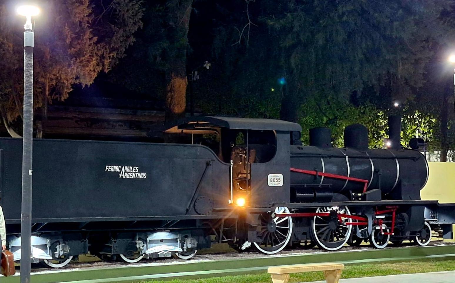 El espacio muestra una perfecta simbiosis entre lo histórico y lo moderno, resaltando con una muy precisa iluminación tanto a la vieja locomotora como a la pasarela, construcción al estilo ferroviaria que justamente permita pasar a los peatones de un lado hacia otro.