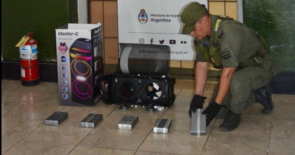 Así se descubrió que dentro del parlante había cinco paquetes rectangulares que contenían una sustancia en polvo. Al realizar los trabajos de campo, los gendarmes establecieron que se trataba de cocaína, con un peso total de 5 kilos 418 gramos.