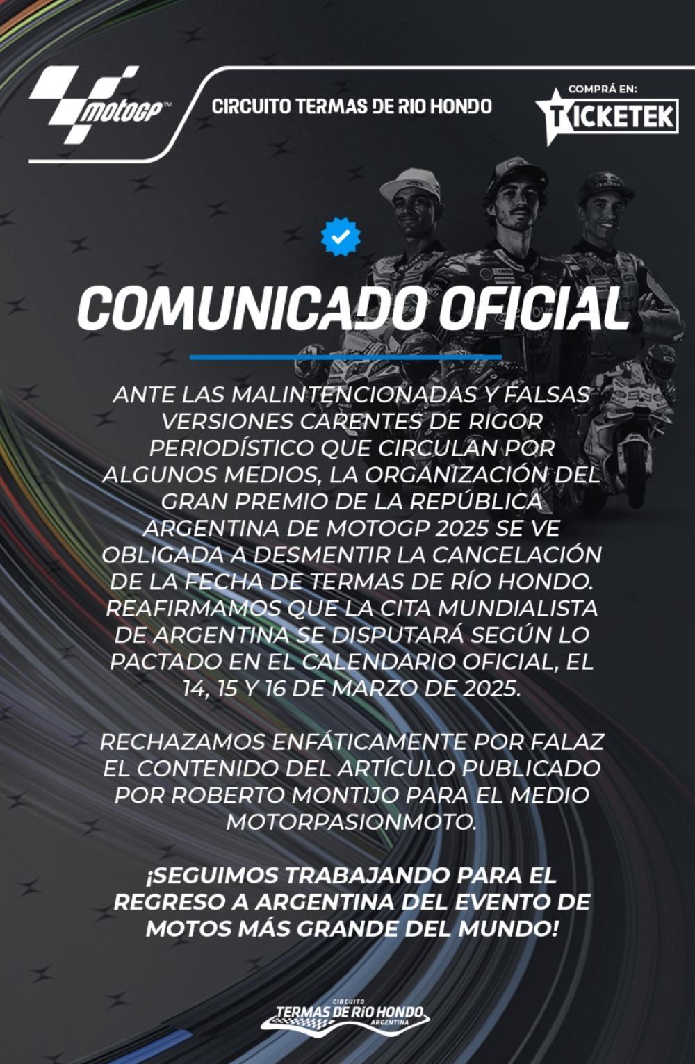 Niegan la suspensión del Moto GP 2025: el comunicado oficial Niegan la suspensión del Moto GP 2025: el comunicado oficial