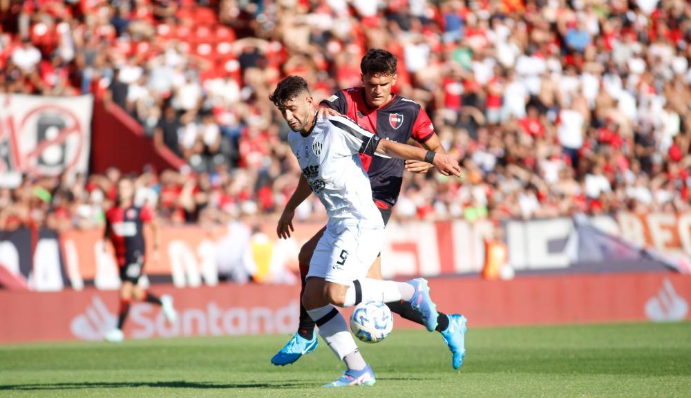 El atacante, con un enganche hacia adentro, desairó a dos adversarios fuera del área, se perfiló para la zurda y sacó un remate que fue combado al ángulo derecho de Ingolotti. Hasta ahí, fue Newell's el que tuvo un poco más la pelota y el que insinuaba con llevar más peligro al arco ferroviario.