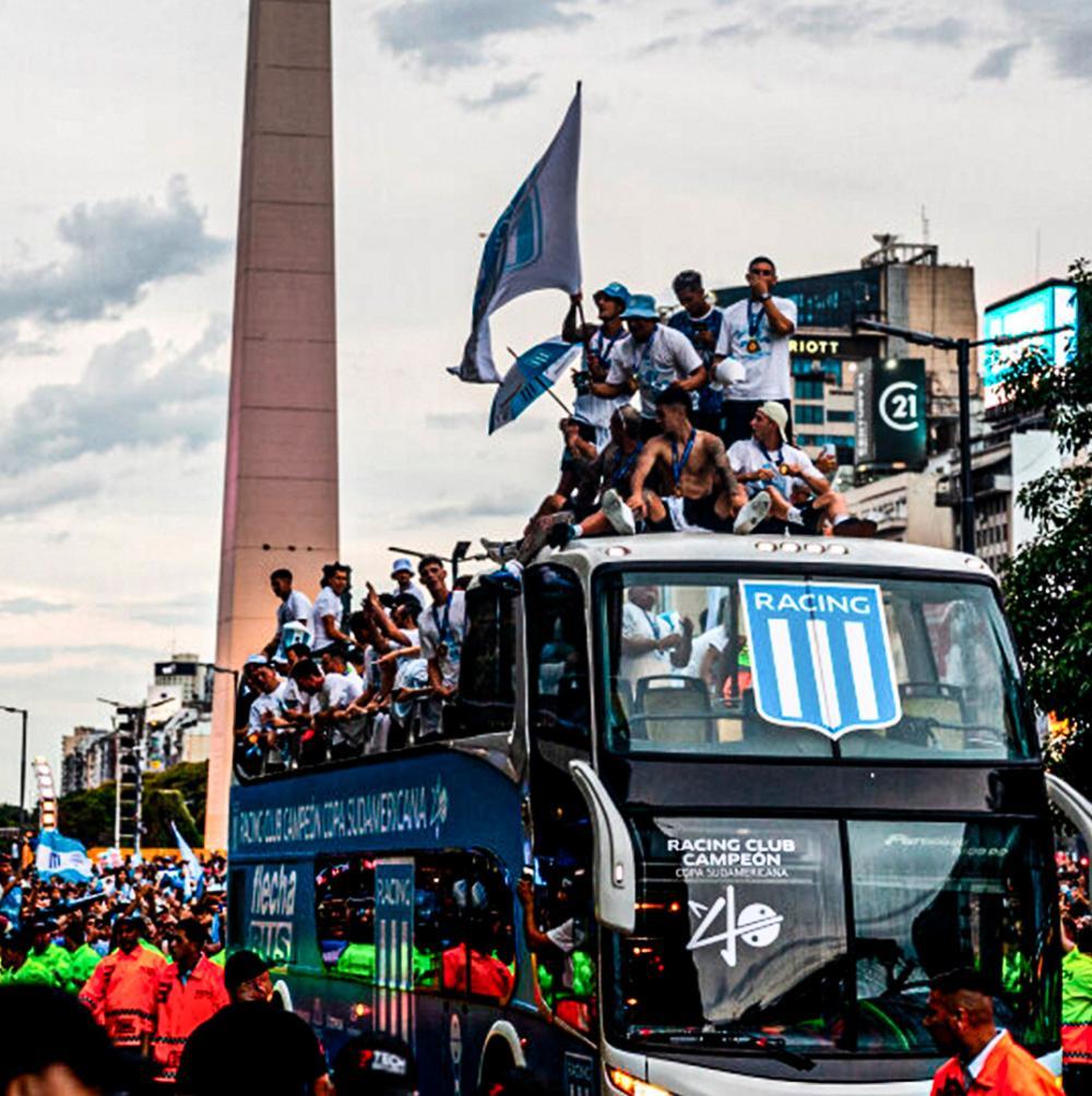 Los jugadores y cuerpo técnico, con el entrenador Gustavo Costas al frente, se dirigieron al Obelisco en un micro descapotable y realizaron un recorrido emblemático para celebrar junto a miles de fanáticos, que lo esperaron con algarabía y ansiedad.