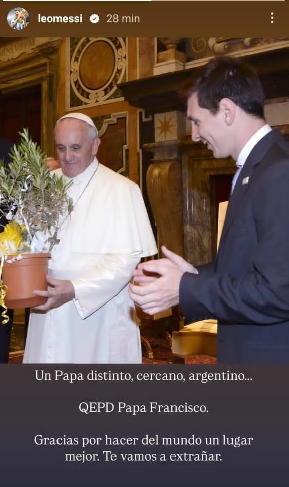 El posteo de Messi, acompañado de una imagen en la que se lo ve entregándole una planta de olivo al pontífice en una audiencia privada, rápidamente se viralizó y fue replicado por medios de todo el mundo. La publicación no solo reflejó el afecto personal que el futbolista tenía por el Papa, sino también el respeto que se ganó Francisco en todos los rincones del planeta por su cercanía, humildad y compromiso con los más vulnerables.