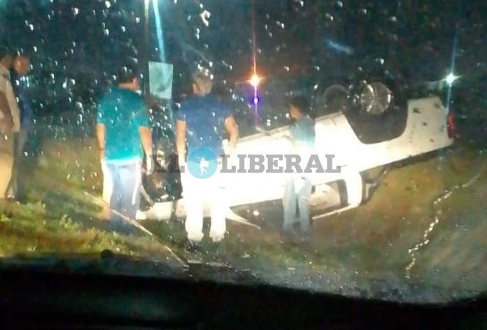 Debido a la poca visibilidad producto del intenso granizo, impactó contra una alcantarilla, lo que provocó el vuelco del vehículo, que quedó con sus cuatro ruedas hacia arriba, con importantes daños materiales.