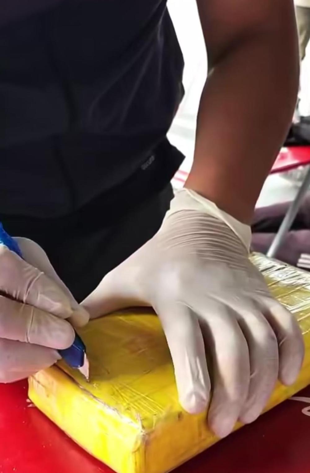 La prueba de campo realizada de la sustancia secuestrada permitió confirmar la sospecha de los investigadores sobre el cargamento de cocaína que se encontraba distribuida en ladrillos que presentaban en cada paquete sellos de delfín", se enfatizó en la gacetilla policial.