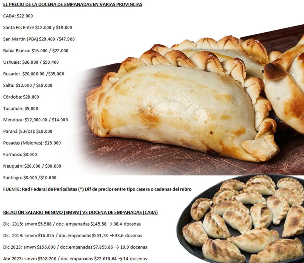 El poder adquisitivo del salario mínimo cayó fuertemente en la última década y un dato simbólico lo demuestra: en abril de 2025 se pudieron comprar 14 veces menos docenas de empanadas que en diciembre de 2015, según un relevamiento de NA con datos del IPCBA (Índice de Precios al Consumidor de la Ciudad de Buenos Aires) y el Consejo Nacional del Empleo.