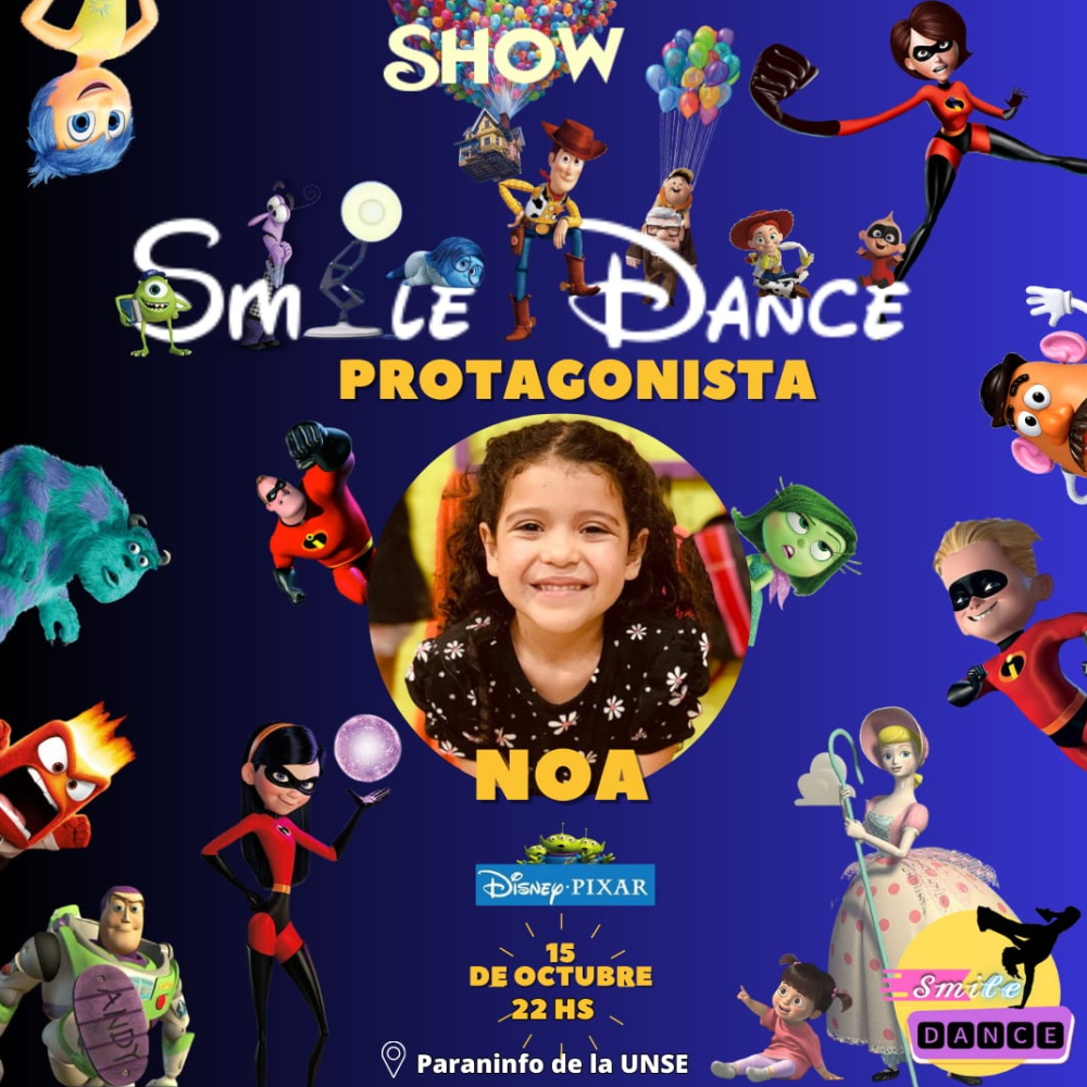 Este domingo 15 de octubre, Smile Dance deslumbrará a la audiencia con un espectáculo de danzas urbanas tematizado en Disney-Pixar. El evento se llevará a cabo en el paraninfo de la Universidad Nacional de Santiago del Estero (UNSE) a las 22:00 hs, y promete ser un viaje mágico y emocionante a través de los mundos de las películas más queridas de Disney-Pixar.