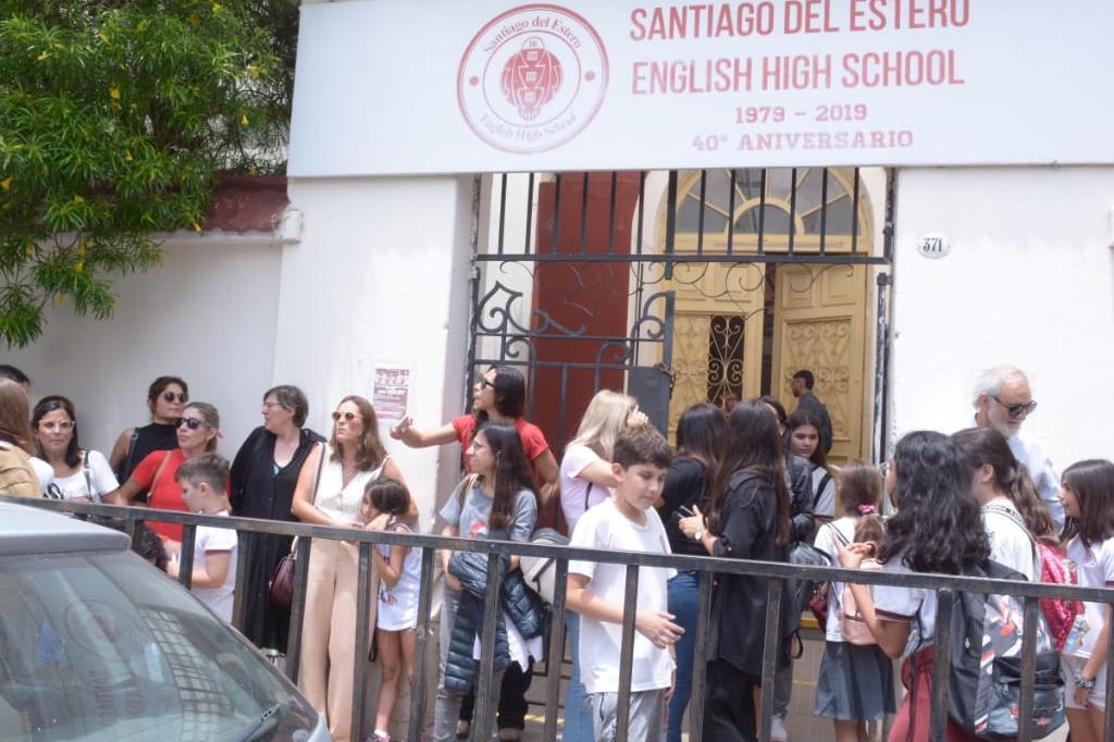 Un enorme grupo de padres se convocó hoy en la puerta del colegio "English High School" para realizar una sentada pidiendo que se considere una reevaluación de los precios de matrículas y cuotas 2024, por incrementos de hasta 250 y 400% respectivamente.