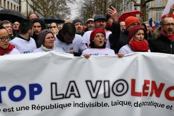 La marcha fue convocada por ese movimiento y la asociación ‘Stop. Maintenant, ça suffit’ (Stop. Ahora, basta ya), con el apoyo de los llamados ‘chalecos azules’, otro colectivo surgido en respuesta a los ‘amarillos’.