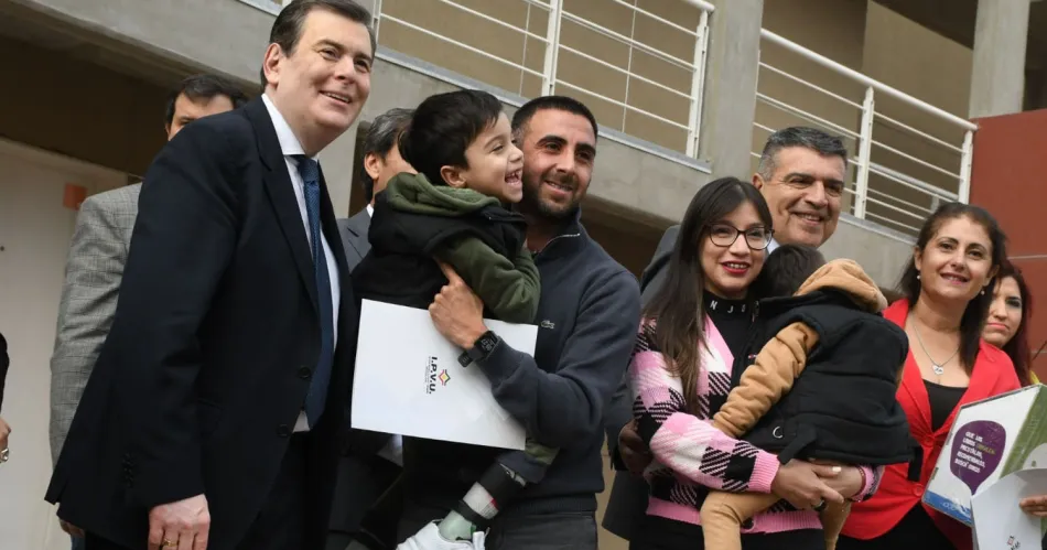 El gobernador realizó el corte de cintas y luego acompañó a los adjudicatarios Romeo Chiaraviglio y Melina Ceratto a su nuevo hogar, a quienes entregó las llaves y documentación.