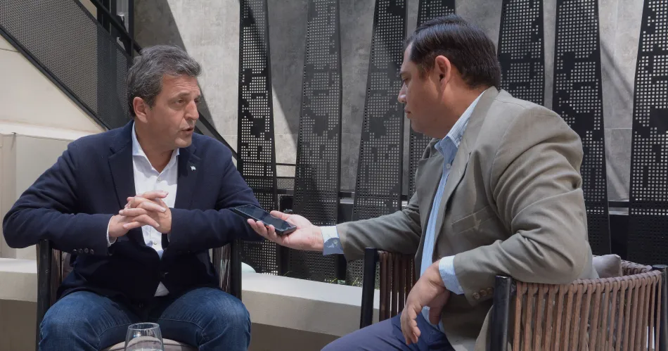 "(Milei) Promueve la venta de armas. Quiere poner la bandera de Estados Unidos en nuestro Banco Central. Quiere regalar las Malvinas ¿Te parece que yo puedo tener alguna coincidencia?", señaló. MASSA El ministro y candidato en un mano a mano a fondo con EL LIBERAL