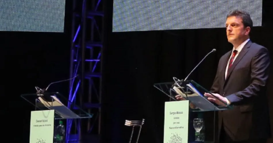 Con la experiencia de haber participado de un debate presidencial en 2015, momento recordado más por el enfrentamiento entre Mauricio Macri y Daniel Scioli, Massa llega a este primer encuentro con el rol del postulante oficialista, que en ese entonces le correpondía al ahora embajador en Brasil.