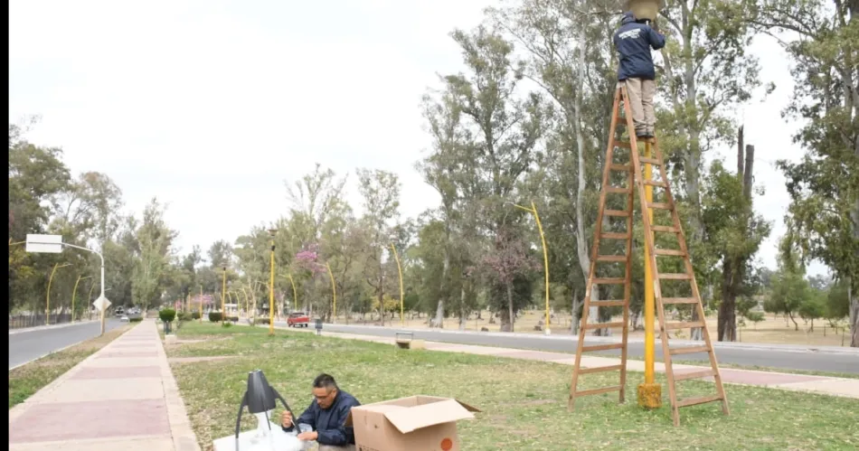 En esta oportunidad, se renovó y optimizó la iluminación del paseo que se ubica sobre las calles Olaechea y Diego de Rojas, donde se reconvirtieron 120 lámparas existentes y se pintaron y repararon las correspondientes columnas y bases que las sostienen.