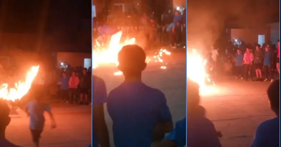Las llamas envolvieron al menor, cuya reacción fue ponerse de pie y salir corriendo en dirección hacia donde estaban otros niños, mientras el docente a cargo de la prueba intentaba frenarlo para apagar el fuego en su ropa.