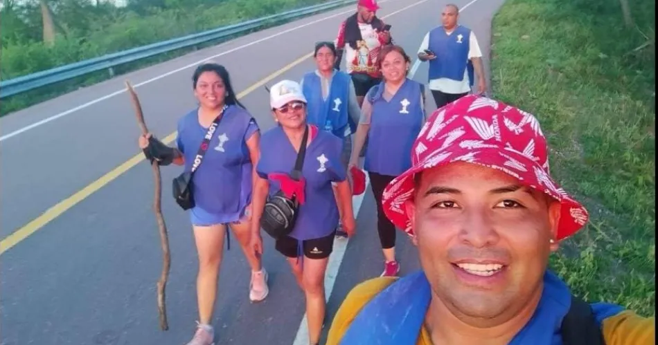 El grupo Cristo Peregrino de La Banda caminaba este sábado entre Lavalle (Santiago del Estero) y El Alto (Catamarca), rumbo al santuario de la Virgen del Valle, en un sacrificio que se ofrenda en agradecimiento a favores recibidos y para pedir nuevas gracias que renuevan el pacto de fe con la Madre Morenita.
