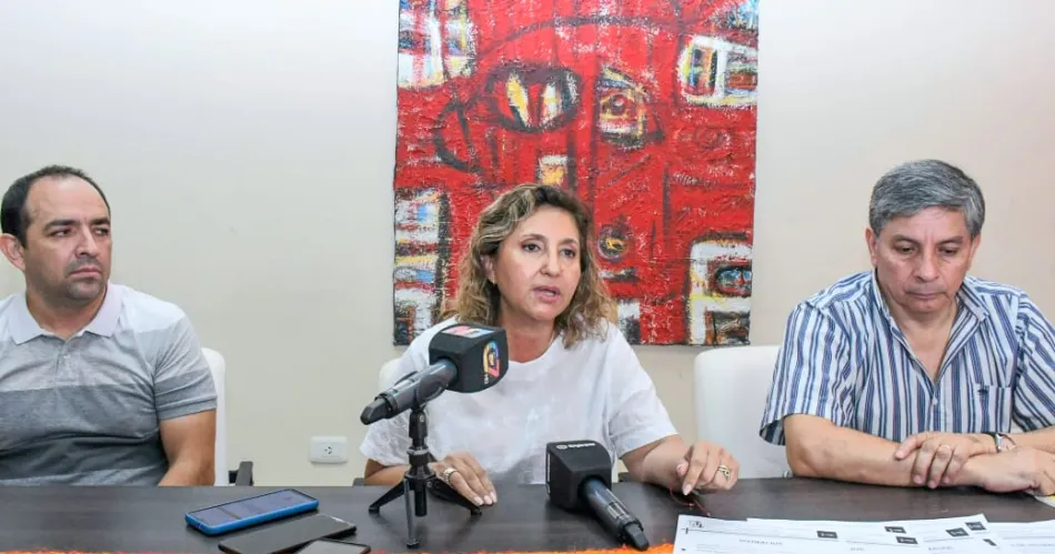 La intendente capitalina, Norma Fuentes, brindó una conferencia en el Palacio Municipal, acompañada por el director de Tránsito y Transporte municipal, Carlos Bucci; y el fiscal municipal, Martín Ramos, informó de las acciones que viene tomando la Municipalidad ante la no prestación del servicio de transporte en la ciudad Capital.