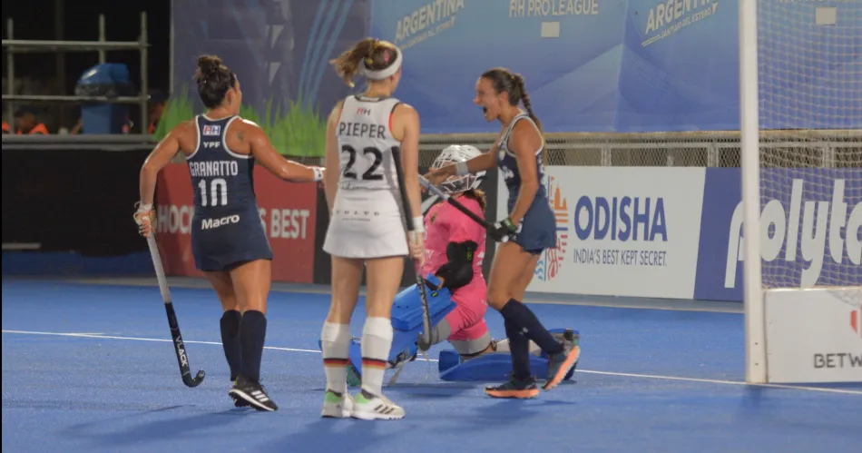 Los seleccionados argentinos de hockey sobre césped masculino y femenino, Los Leones y Las Leonas, se impusieron anoche ante sus similares de Alemania, en dos juegos que le dieron continuidad a la FIH Pro League que tiene nuevamente una ventana como sede al Estadio Provincial de Santiago del Estero.