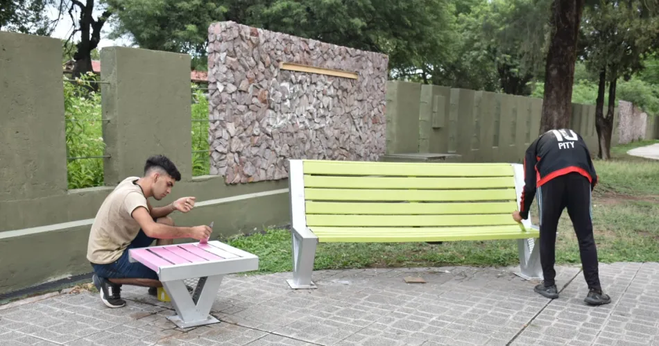 En este contexto de trabajo, a través de la Dirección de Obras Públicas, y con personal de la Sección Carpintería, se realizaron tareas de lijado y recambio de asientos de madera deteriorados, en los bancos que se encuentran en la Plazoleta del Centenario, los cuales luego de ser acondicionados se procedió a cumplir con la tarea de pintura general de los mismos.