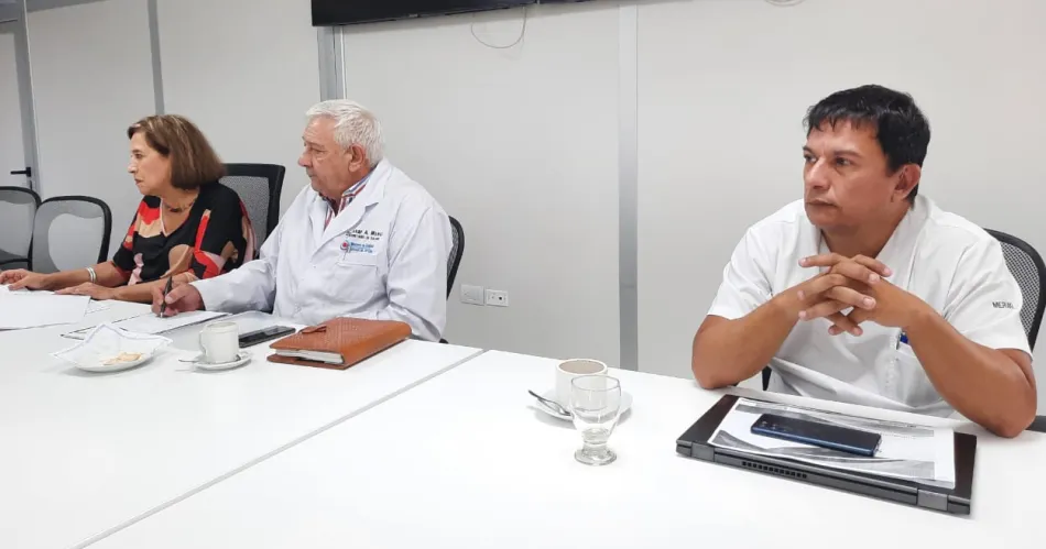 En la sede de la cartera sanitaria, la ministra Natividad Nassif junto al Secretario César Monti y el asesor ministerial, Dr. Oscar Ledesma Patiño, encabezaron una reunión del gabinete y las autoridades hospitalarias donde realizó una Sala de Situación Epidemiológica del Dengue en la provincia.