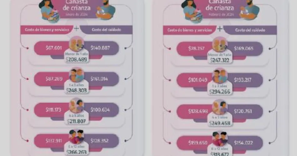 Por su parte, en la edad de 6 a 12 años, el costo de la canasta de crianza fue establecido en $313.672. En enero, fue de $266.263.(+15,1%).