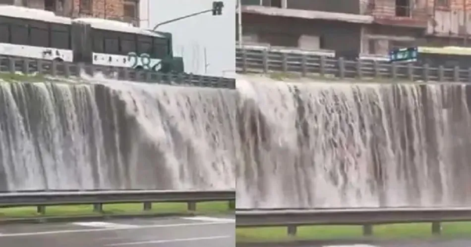 En General Paz y Beiró, un conductor logró registrar la brutal caída de agua desde uno de los tramos de la avenida lo que provocó una "catarata" sorpresiva y cientos de chistes en redes sociales.