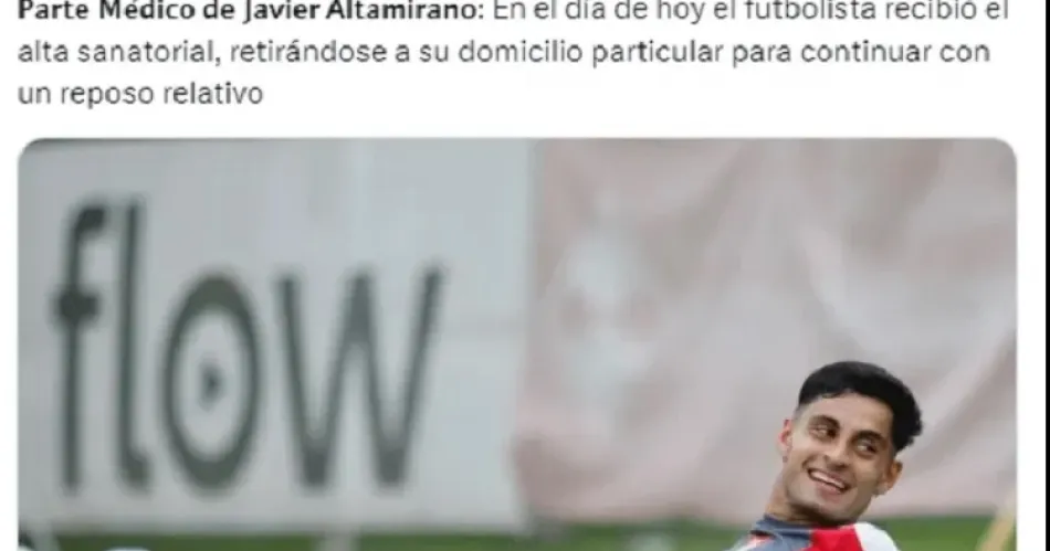 "En el día de hoy el futbolista recibió el alta sanatorial, retirándose a su domicilio particular para continuar con un reposo relativo", informó el club en las redes sociales.