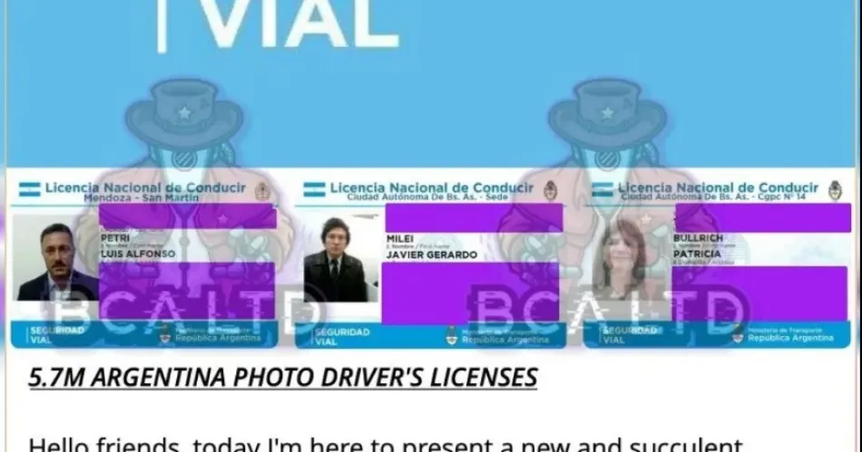Entre las licencias intrusadas contenidas en la base fueron exhibidas las del presidente, Javier Milei, y las de los ministros de Seguridad y Defensa, Patricia Bullrich y Luis Petri.