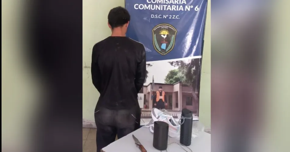 El individuo, de 20 años y residente en el Barrio 8 de Abril, llevaba consigo varias pertenencias, incluyendo un par de zapatillas blancas, un parlante marca Phillips de 15 cm de largo y una botella de agua plástica negra. Debido a la aglomeración de personas en el lugar, fue trasladado a la sede policial junto con los objetos incautados para continuar con el procedimiento correspondiente.