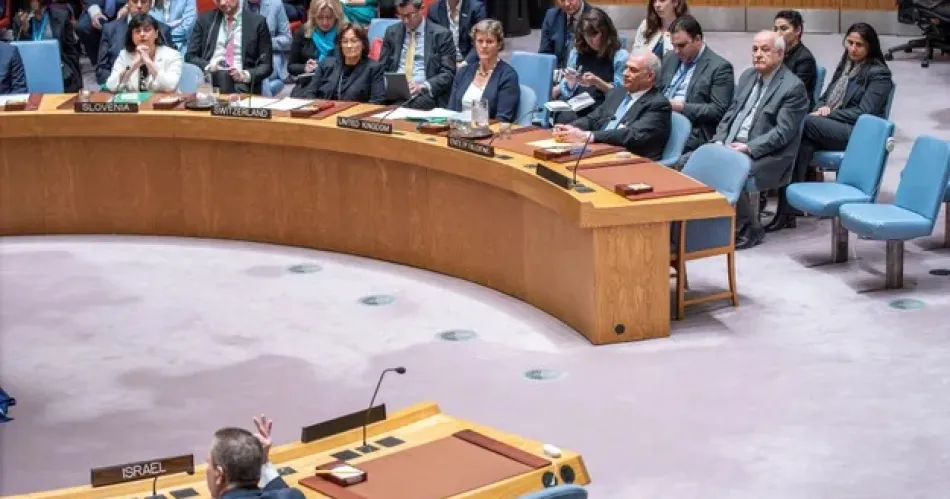 Washington vetó un proyecto de resolución que recomendaba a los 193 miembros de la Asamblea General que "el Estado de Palestina sea admitido como miembro" de la ONU. Reino Unido y Suiza se abstuvieron, mientras que los doce miembros restantes del consejo votaron a favor.